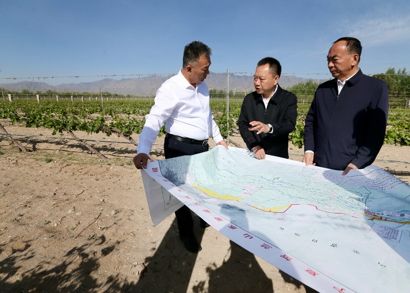 李國英調(diào)研賀蘭山東麓灌區(qū)高效節(jié)水灌溉情況