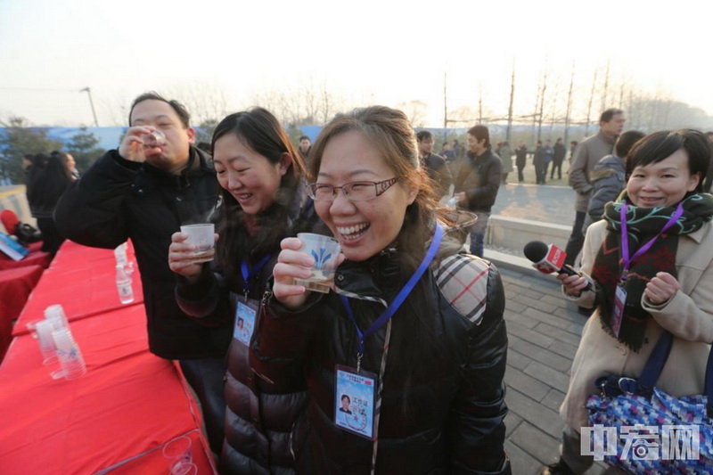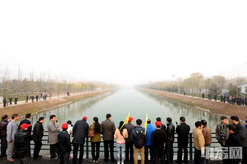 2014年12月27日,丹江口水庫的水經(jīng)過15天流到北京團城湖,當天下午北京市民喝上千里之外的長江水。(陳華平 攝)